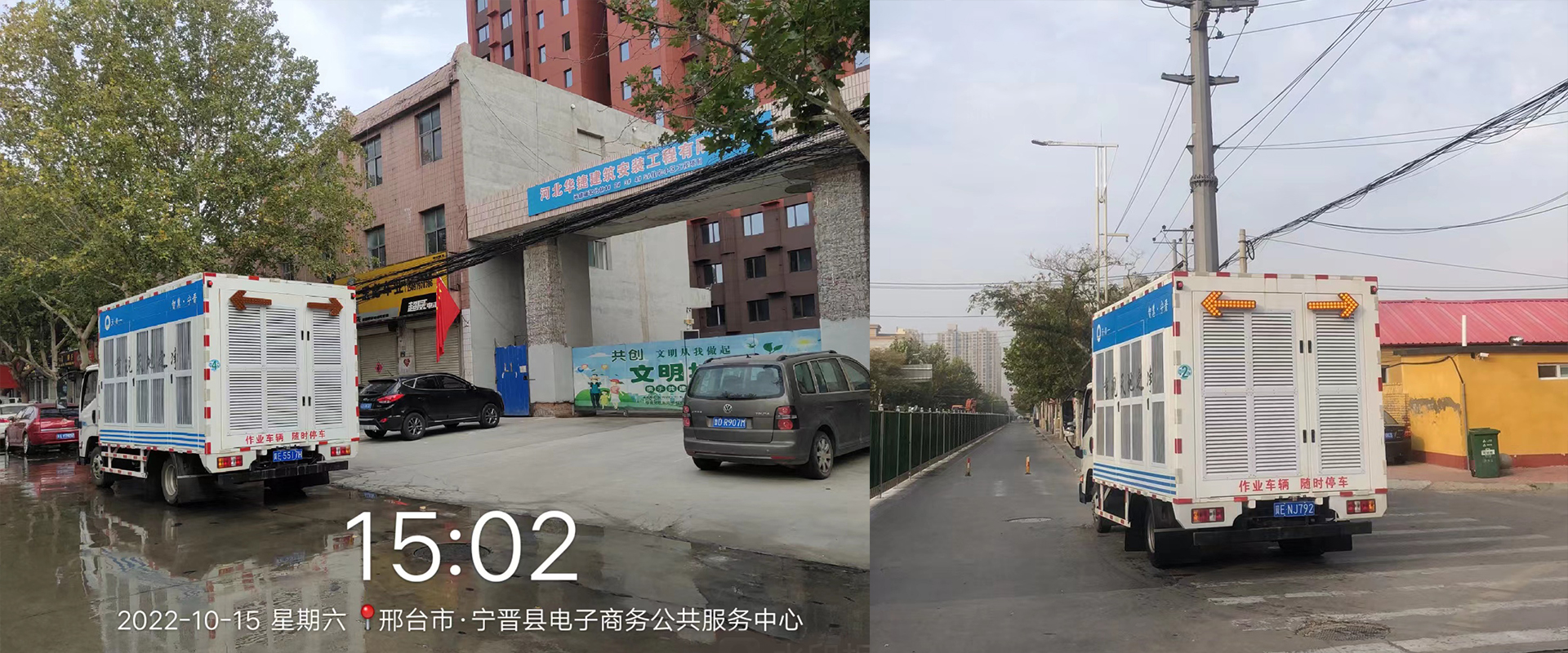 在本项目中,ng28(南宫)结合城区污染特点,共采用了5套移动式除霾车对宁晋县内区域实施空气治理,并配合原有的雾炮车、洒水车、与道路冲洗车在污染重点道路进行,形成陆空立体化降尘模式,有效抑制道路扬尘污染,捕捉空气中的细小颗粒,极大促进了县区空气质量的改善。
