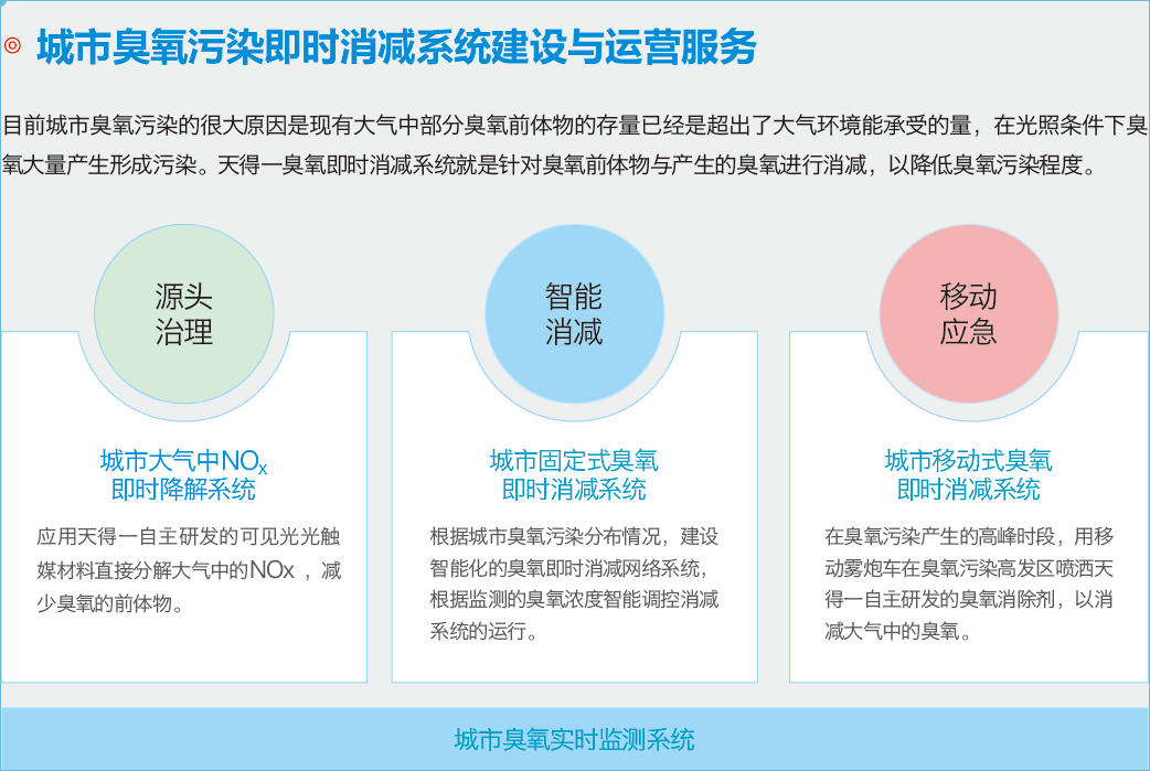 1.城市臭氧污染即时消减系统建设:目前城市臭氧污染的很大原因是现有大气中部分臭氧前体物的存量已经是超出了大气环境能承受的量,在光照条件下臭氧大量产生形成污染。ng28(南宫)臭氧即时消减系统就是针对臭氧前体物与产生的臭氧进行消减,以降低臭氧污染程度。