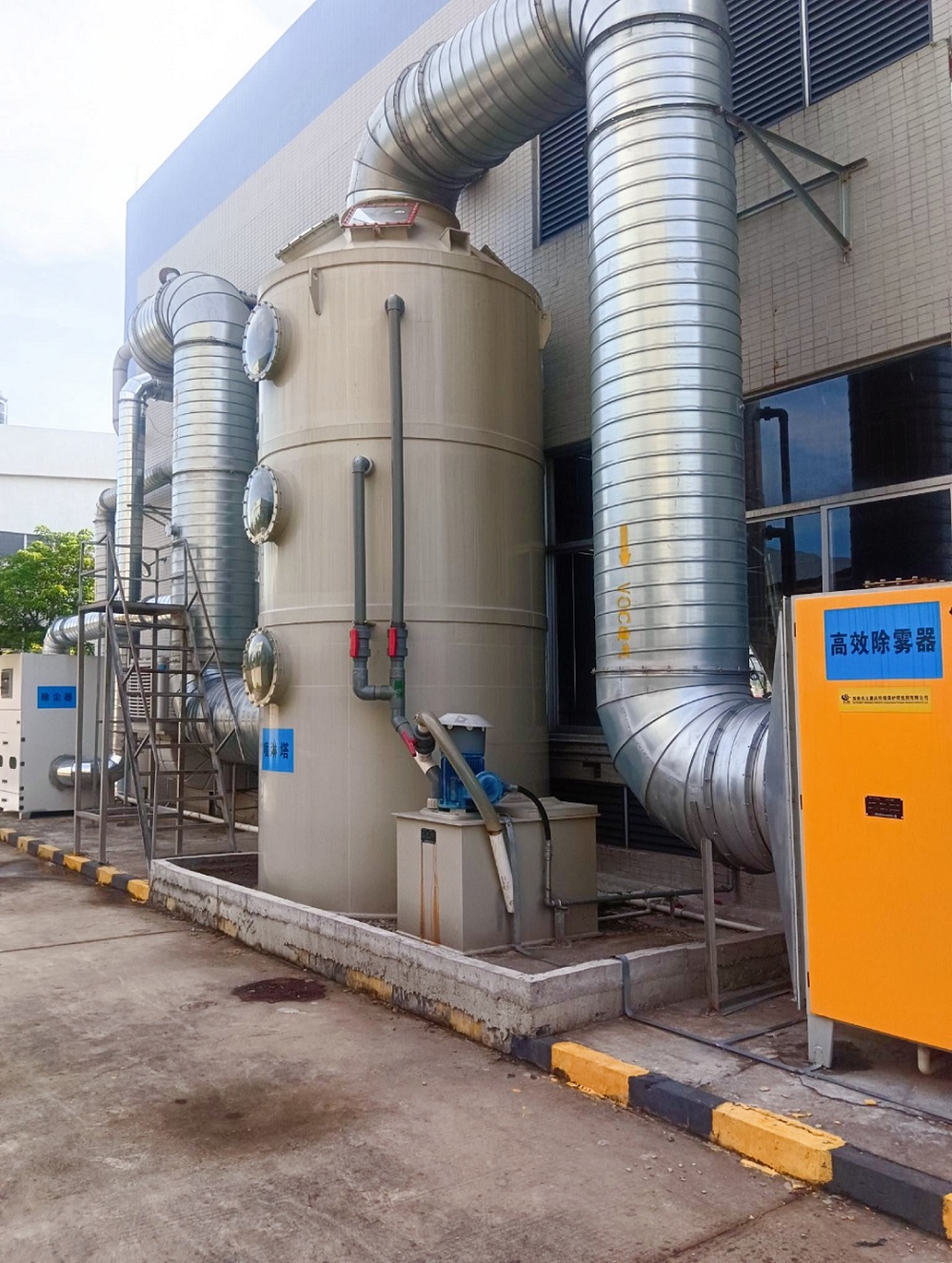 2)、废气经过喷淋洗涤塔后含有大量的水雾颗粒,通过高效除雾器拦截分离废气中的大粒径水雾颗粒(≥20um),降低废气含湿量;