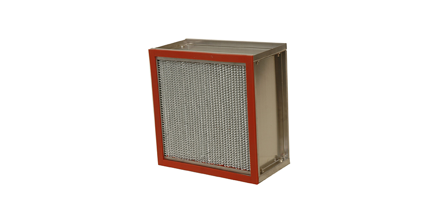 耐高温高效滤网一般采用用超细玻璃纤维作滤料,胶板纸、铝箔作分隔板,与铝框胶合而成,捕集0.5μm以上的尘埃粒子,阻力小、风量大、过滤效率高、风速均匀性好。一般作为空调与通风系统等的最终过滤段,应用于具有高洁净要求的区域,效率等级可做到H13、H14级,MPPS效率为99.95%至99.995%。