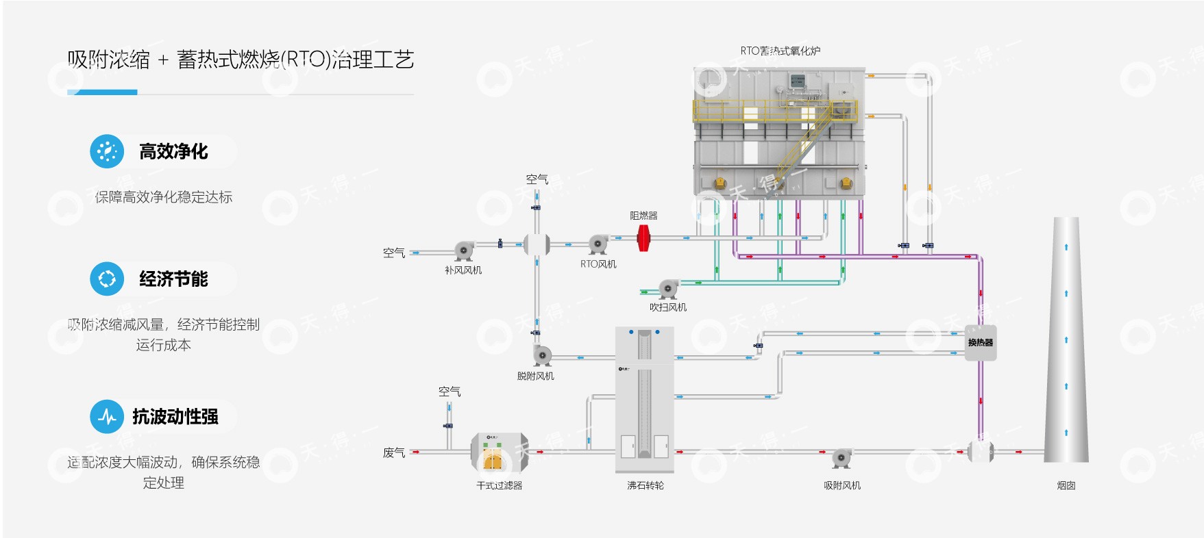 我司根据复合工序的实际生产情况,定制减风增浓 + RTO解决方案,助力企业高效解决废气难题。通过减风增浓环节,既能降低废气排放量,又能提高 VOCs 浓度;后端的 RTO/TO 接收经浓缩的高浓度废气后,可将 VOCs 高效氧化分解为无害的 CO₂和 H₂O,确保废气达标排放。​