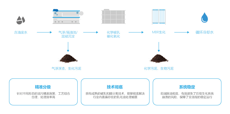 高效除油预处理:通过隔油、高效气浮(DAF)、混凝沉淀等成熟工艺,高效去除粒径较大的浮油和分散油,大幅降低后续单元负荷。